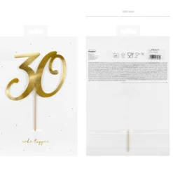30v- koristekyltti kultaisena, materiaali kiiltävää kartonkia ja puinen tikku.