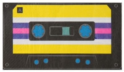 Äänikasetteja muistuttavat suorakaiteen muotoiset lautasliinat.