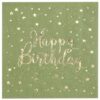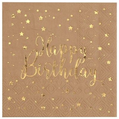 20 pientä lautasliinaa Happy Birthday -metallikokoelmasta, kraft-väristä paperia, kultakirjoituksella, syntymäpäiville.