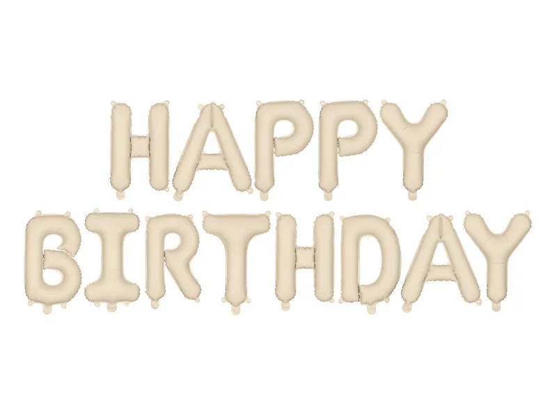 Folioilmapallot, josta muodostuu teksti HAPPY BIRTHDAY.