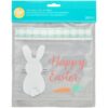 20 kirkasta, ’hoppy easter’ painettua sellofaanipussia ja laventelin väriset nauhasulkijat. Pussin koko 10,1cm x 24,1cm.