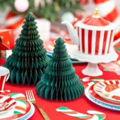 Vihreä hunajakenno-kuusi ripustuslenkillä. Voi ripustaa roikkumaan tai käyttää pöytäkoristeena.