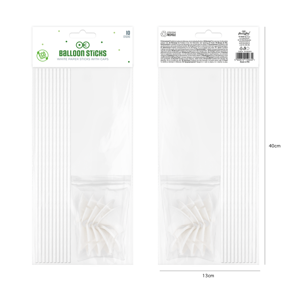 Ympäristöystävälliset luonnonvalkoiset ilmapallotikut. Pakkaus sisältää 10 kpl tikkuja, joihin voi kiinnittää ilmapallon.