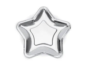 Lautaset Tähti hopeametallipaperista, halkaisija n. 23 cm.