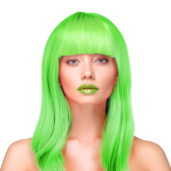 Peruukki – pitkät suorat neonvihreät hiukset.