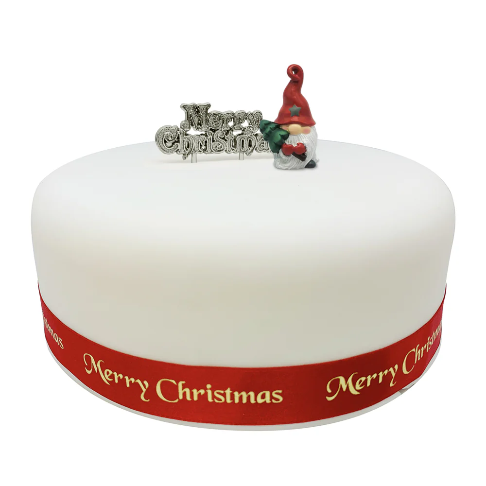Käsin maalattu tonttukoriste ja kyltti Merry christmas. Tontun koko 3,5cm x 6cm ja kyltti 4cm x 7cm.