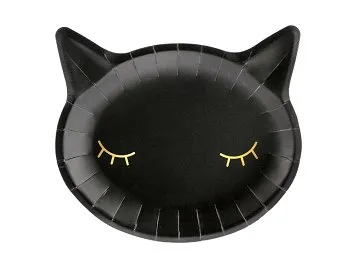 Paperilautaset Cat mustalla värillä kultaprintillä, koko n. 22 x 20 cm.