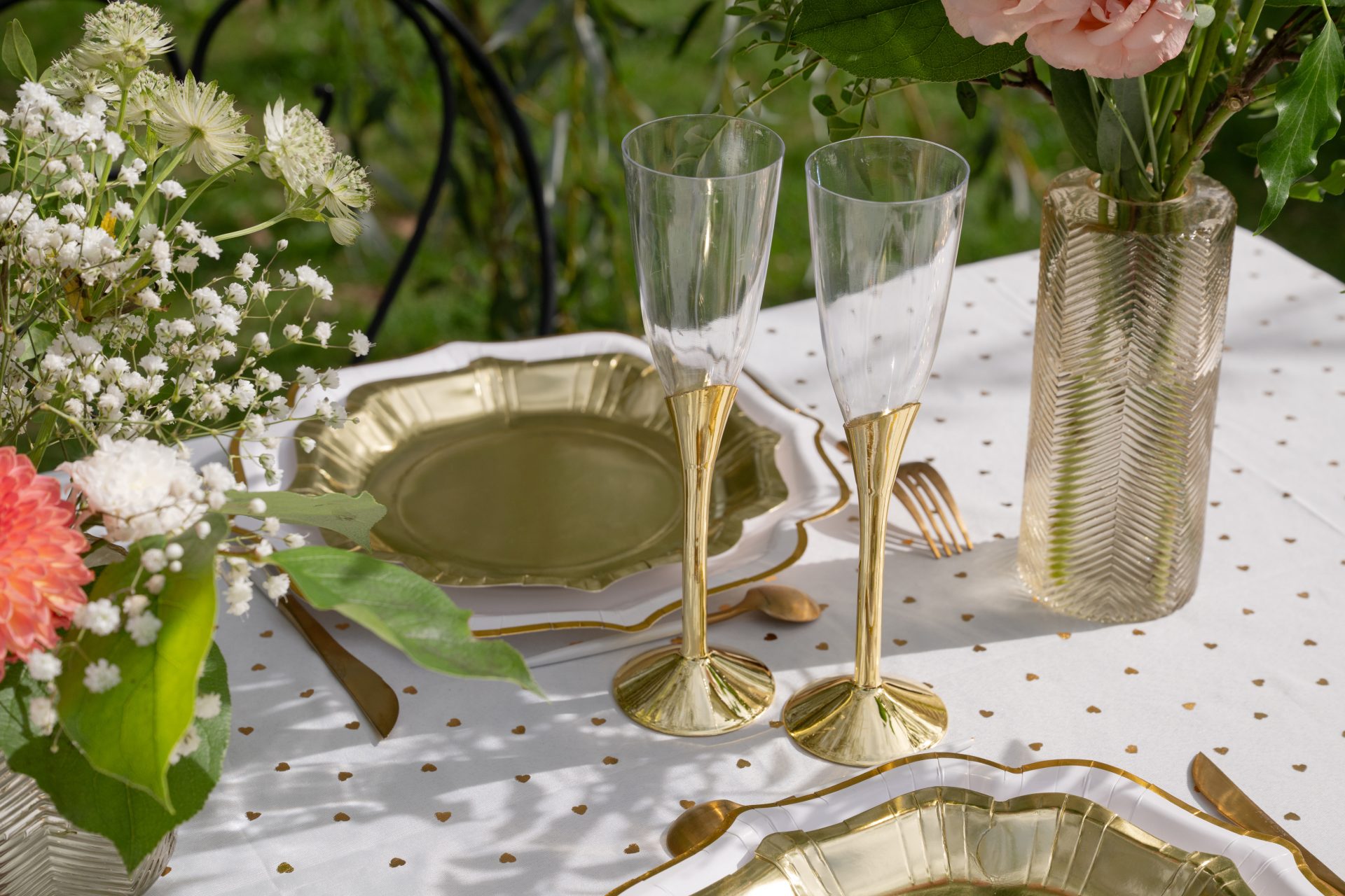 Polystyreenistä valmistetut kestävät kuohuviinilasit kauniilla, kultaisella jalalla. Pakkauksessa 6kpl.