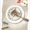 Kannessa kuva valkoisesta autosta joka ajaa lumisella tiellä, luminen joulukuusi katolla.