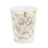 Beigenväriset paperilautasliinat, joissa on tummanbeiget kukat. Mitat avattuna noin 33 x 33 cm, taitettuna noin 16,5 x 16,5 cm.