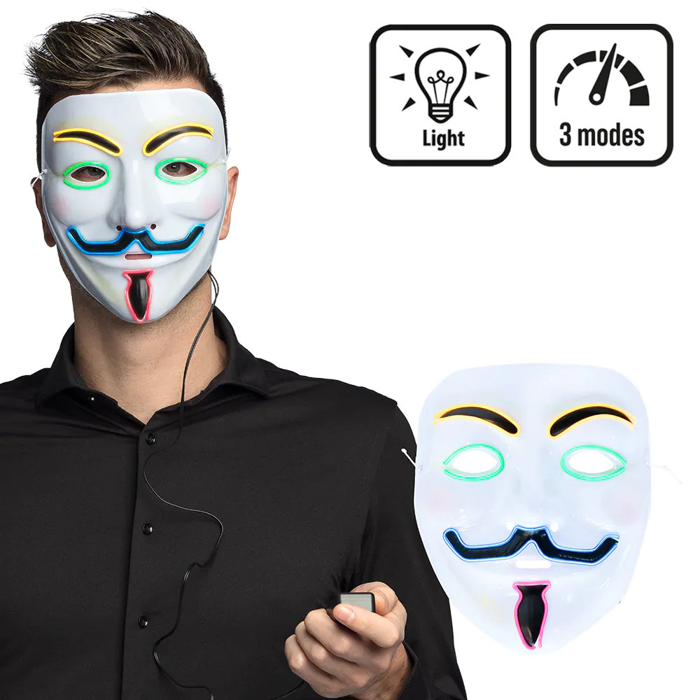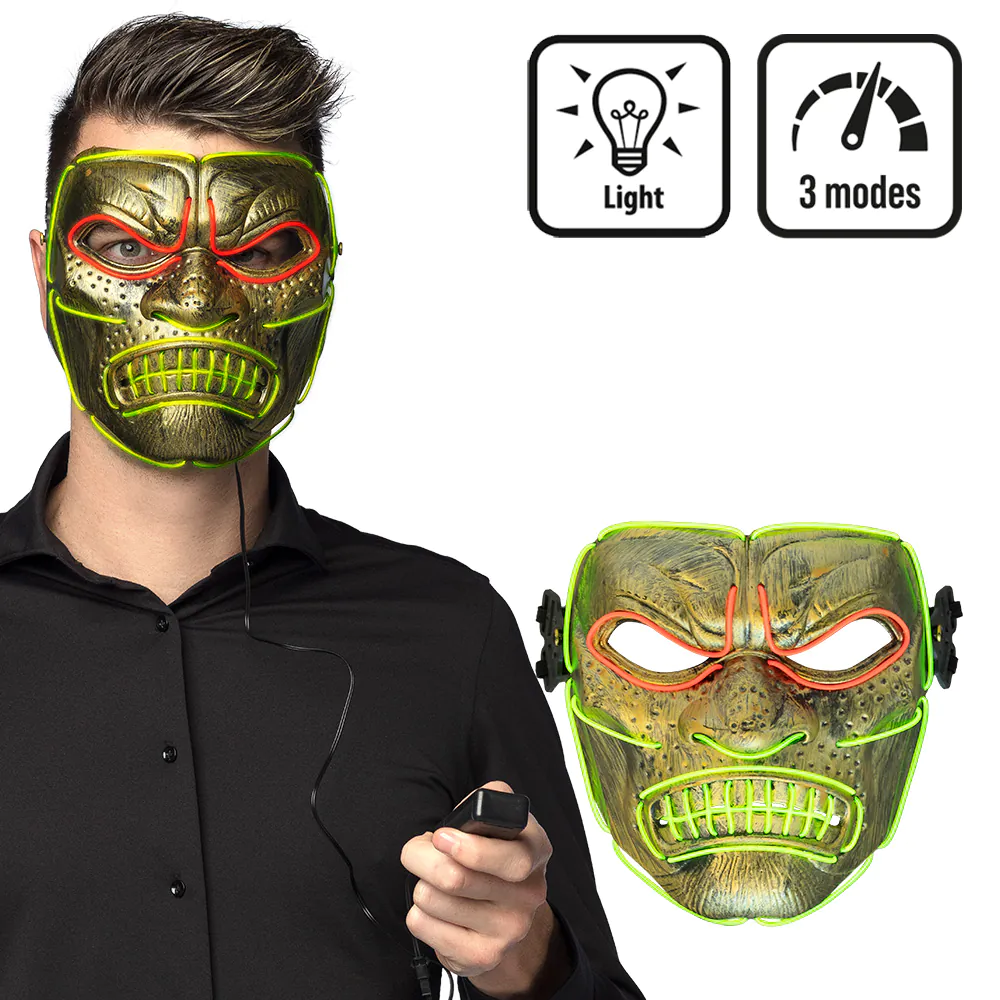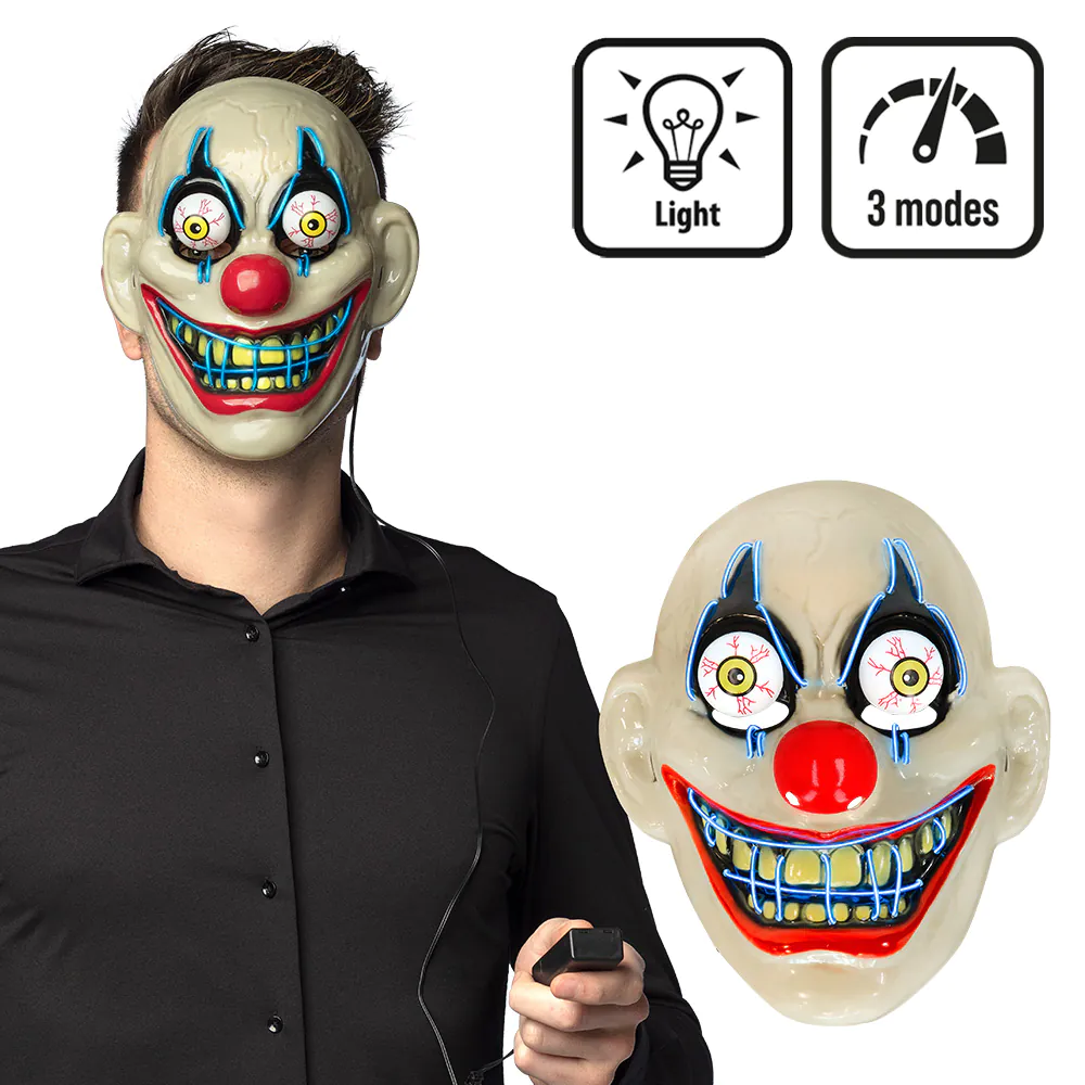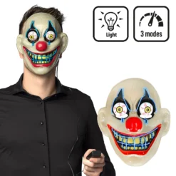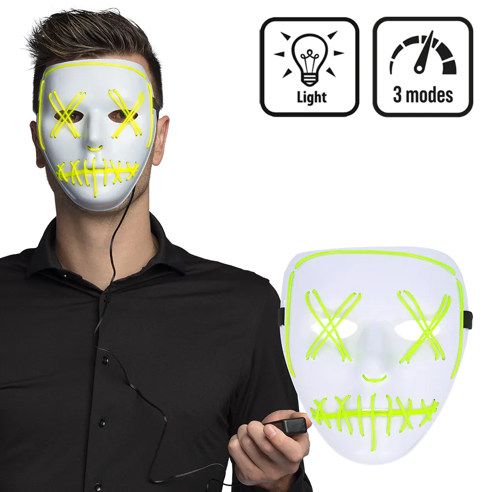 Lajitelma erilaisia LED-valaistuja halloween maskeja, one size aikuisille. Paristokäyttöinen.