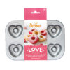 Tämän vuoan kokonaiskoko on 40 x 26 cm, 24 minikuppikakkua varten, joiden pohjan halkaisija on 3,5 cm. Valmistettu alumiinista.