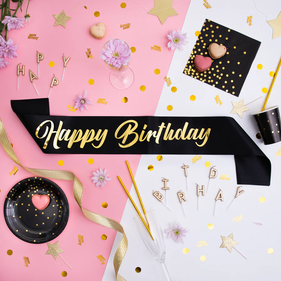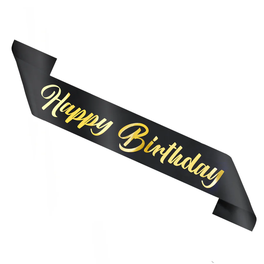 Olkanauha Happy birthday, kulta-musta