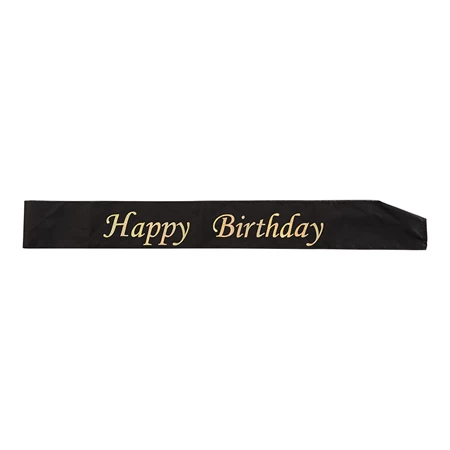 Musta nauha kultaisella tekstillä: Happy Birthday