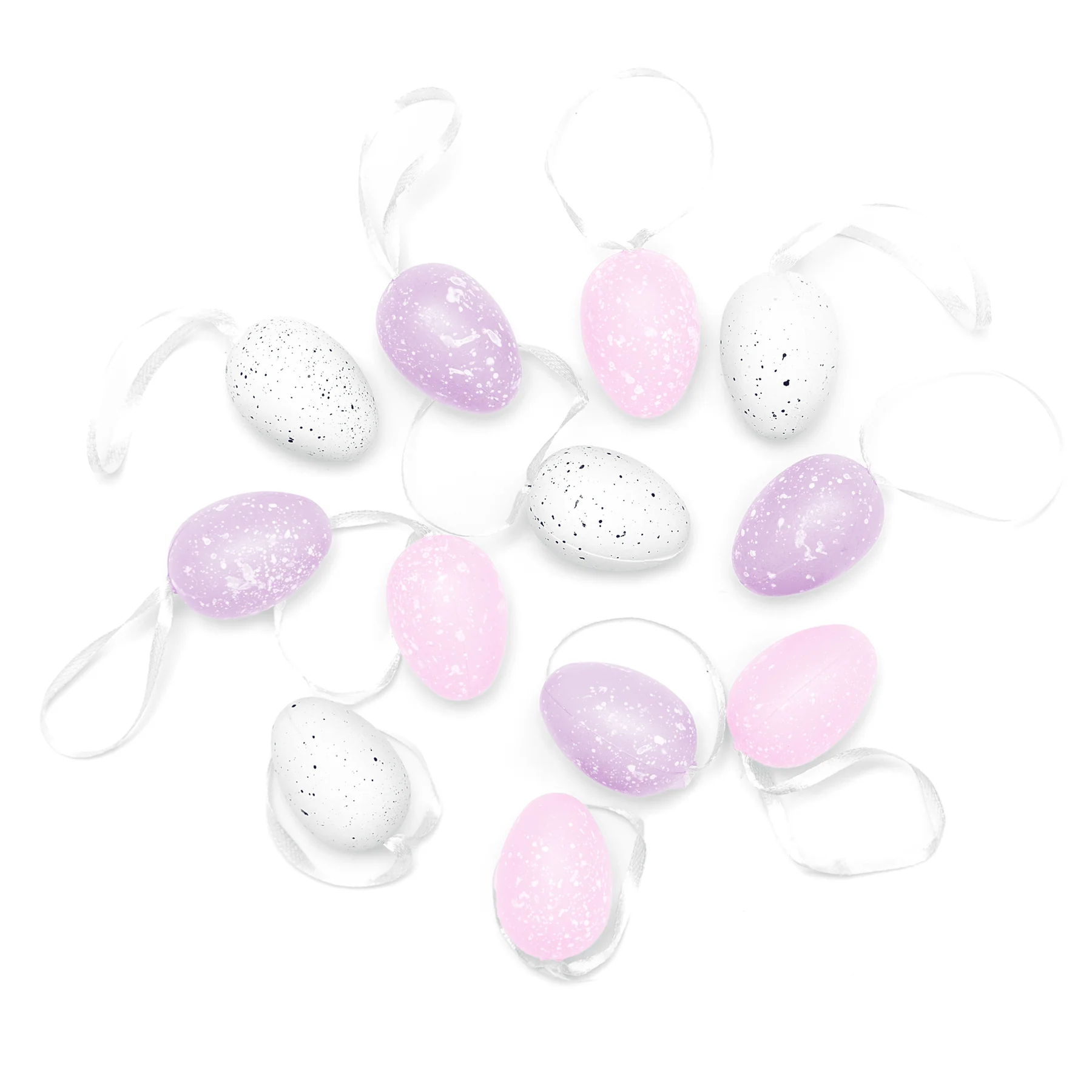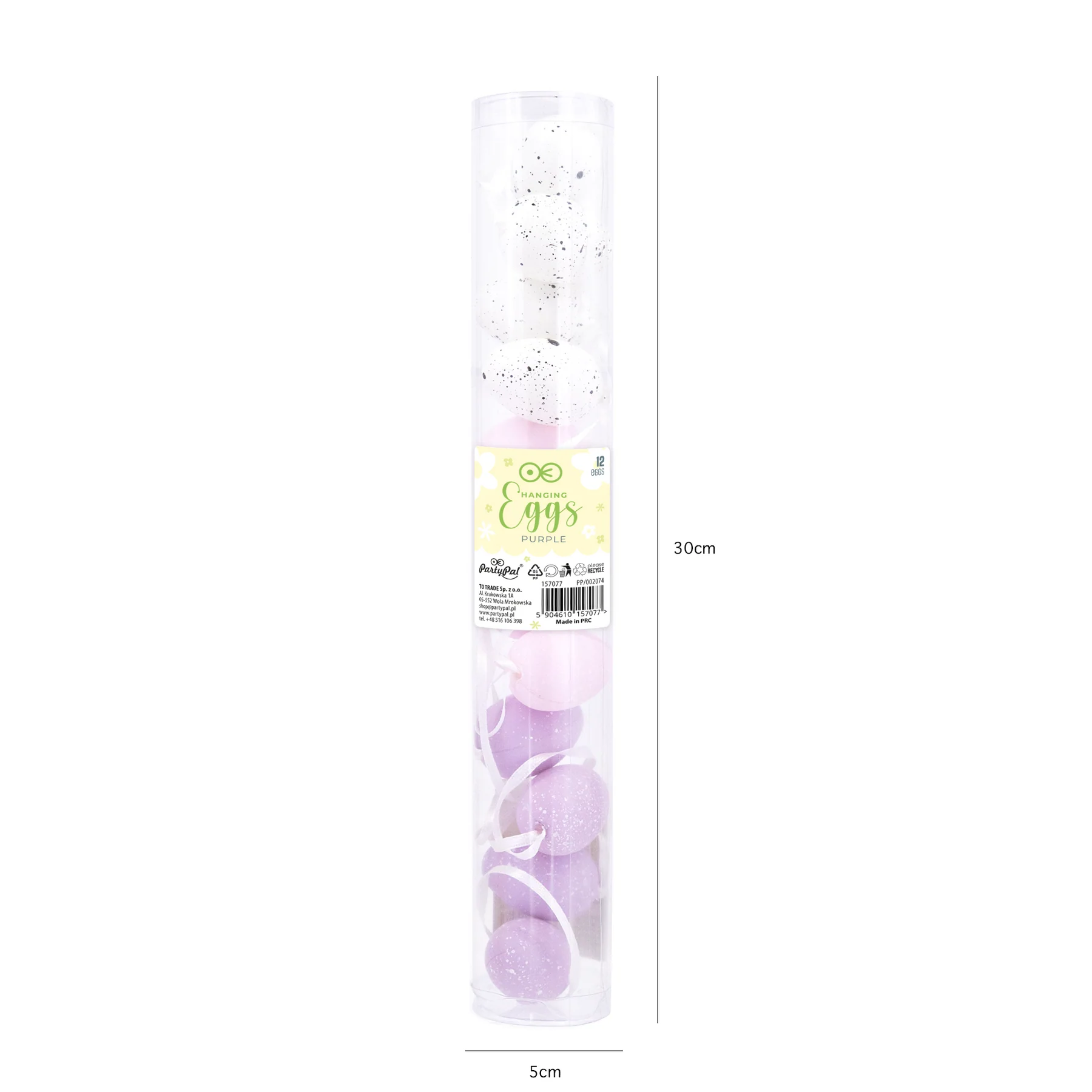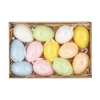 Pakkauksessa 12kpl värilajitelma muovisia koristemunia.