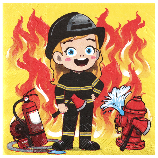3-kerroksinen lautasliina, joka on kaksipuolisesti koristeltu kahdella eri palopelastaja-hahmolla. Pakkaus sisältää 20 lautasliinaa.