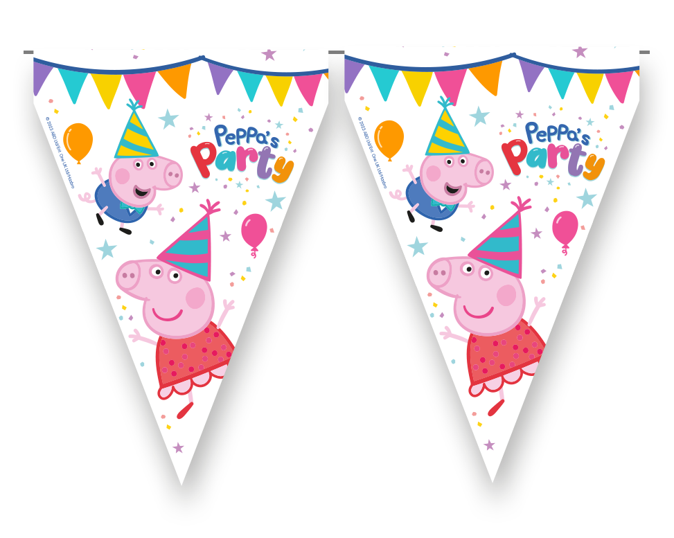 Osastot: Lasten juhlat, Pipsa Possu-teema, JUHLATUOTTEET, Lippu- ja viirinauhat / tekstibannerit
