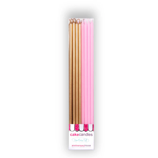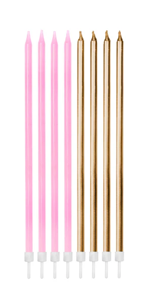 Pakkaus sisältää 16 pitkää kynttilää ja pidikkeet.