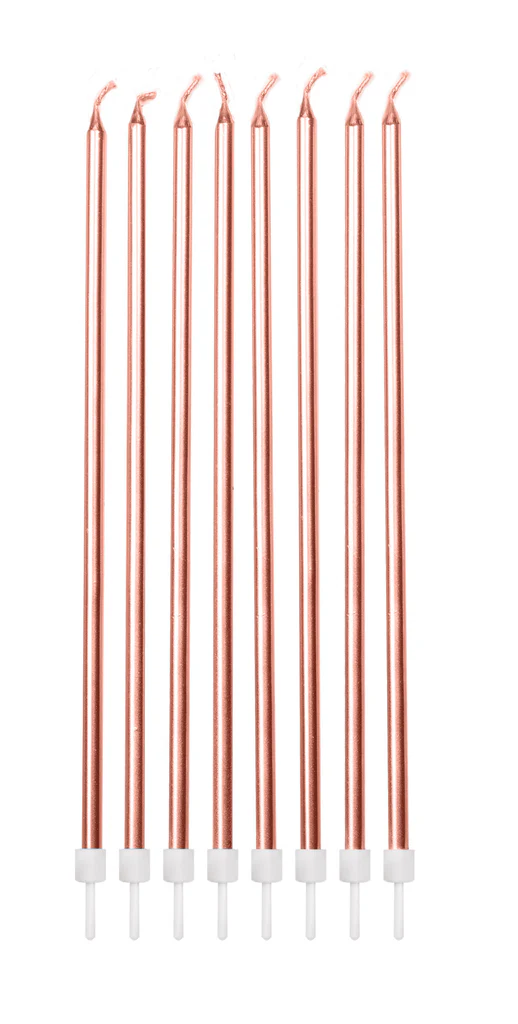Pitkät kakkukynttilät ruusukulta 16kpl