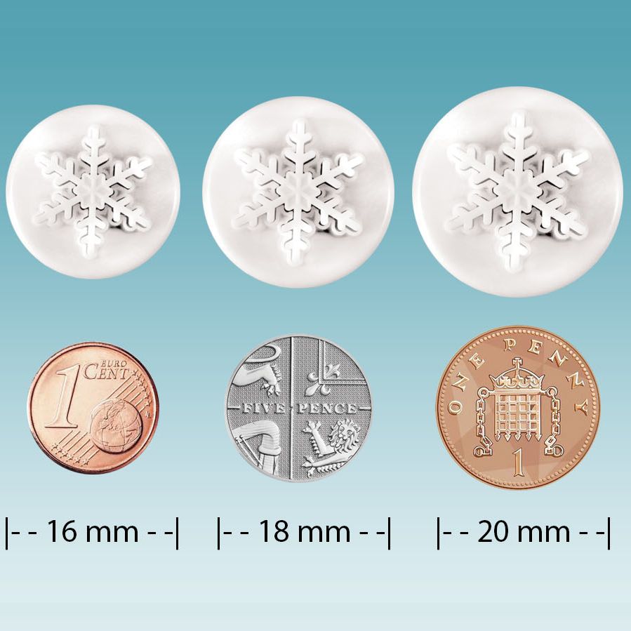 Nämä suloiset PME:n minilumihiutalemuotit ovat jokaisen kakkusisustajan välttämättömyys. Sarja sisältää 3 pientä mäntäleikkuria, jotka eivät vain ole ihanteellisia joulun ja talven luomuksiin, vaan niitä voidaan käyttää myös pakasteaiheisten kakkujen, kuppikakkujen ja keksien tekemiseen.