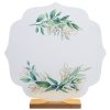 Puinen, sydämen muotoinen pöytäkyltti omalla jalustalla. Kyltti on valkoinen ja koristeltu kukkasin.