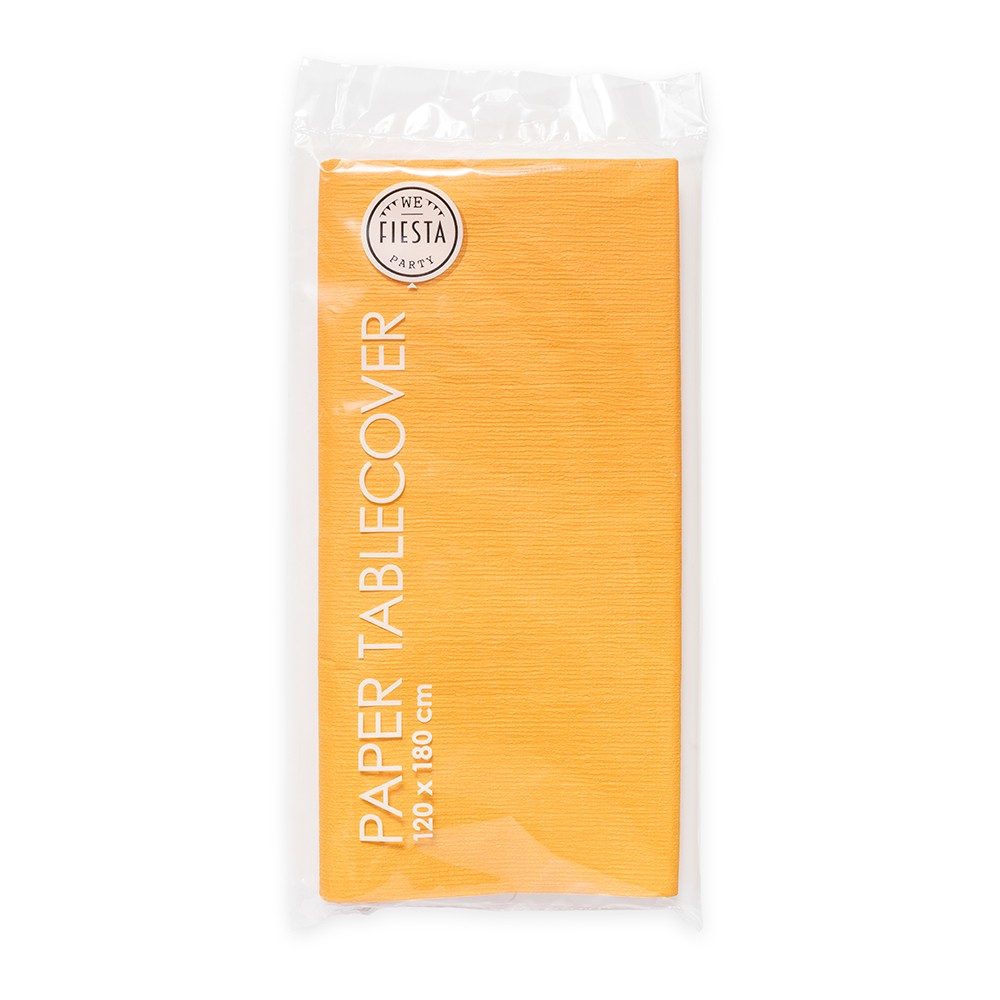Paperinen pöytäliina 120x180cm, kaunis keltainen sävy ja teksuuri.
