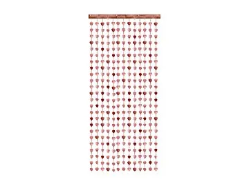 Juhlaverho – Ruusukullanväriset foliosta tehdyt sydämet, leveys n. 100 cm, pituus n. 245 cm.