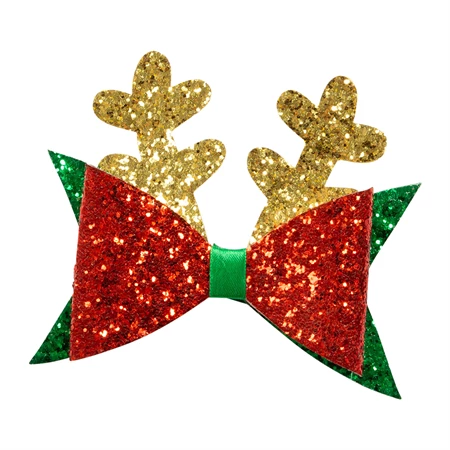 Kiva hiusklipsi hiusten koristeluun joulun aikaan. Ruusuke on vihreä ja punainen, kun taas sarvet ovat kultaisia.