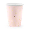 Paperikupit, vaaleanpunaiset kullanvärisillä metallireunoilla, vain kylmille juomille, mahtuu 220 ml:aan (7,4 unssia). Juomakupeissa on 17 päivänä joulukuuta 2020 annetussa komission täytäntöönpanoasetuksessa (EU) 2020/2151 säännöistä direktiivin (EU) 2019/904 liitteessä olevassa D osassa lueteltujen kertakäyttöisten muovituotteiden yhdenmukaistettuja merkintäeritelmiä koskevista säännöistä vaadittu painettu merkintä. Euroopan parlamentti ja neuvosto tiettyjen muovituotteiden ympäristövaikutusten vähentämisestä