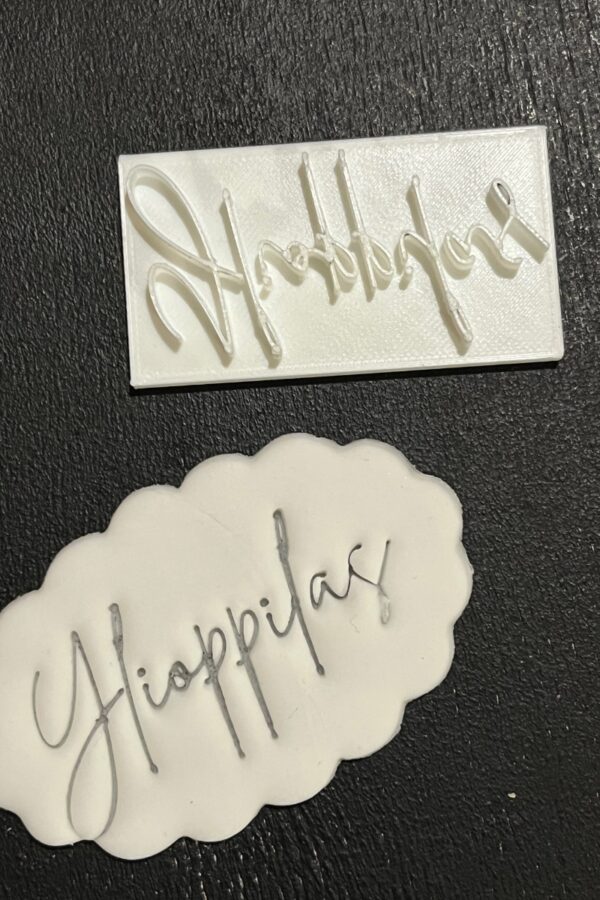 Tekstileimalla voit painaa kauniin tekstin sokeritahnaan, marsipaaniin tai keksitaikinaan.