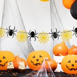 Setti sisältää 6 hämähäkkiä ja kultaista hämähäkinverkkoja.