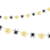 Tyylikäs banneri, jossa oli teksti HAPPY HALLOWEEN, kultaiset kirjaimet asetettiin mustalle taustalle. Lisäksi jokaisessa lipussa on kultainen sääriluun reuna ja kallo päällä.