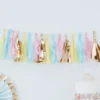 Viirinauha sisältää 14 tupsua ja 4 glittertähteä 2m pinkissä nauhassa.