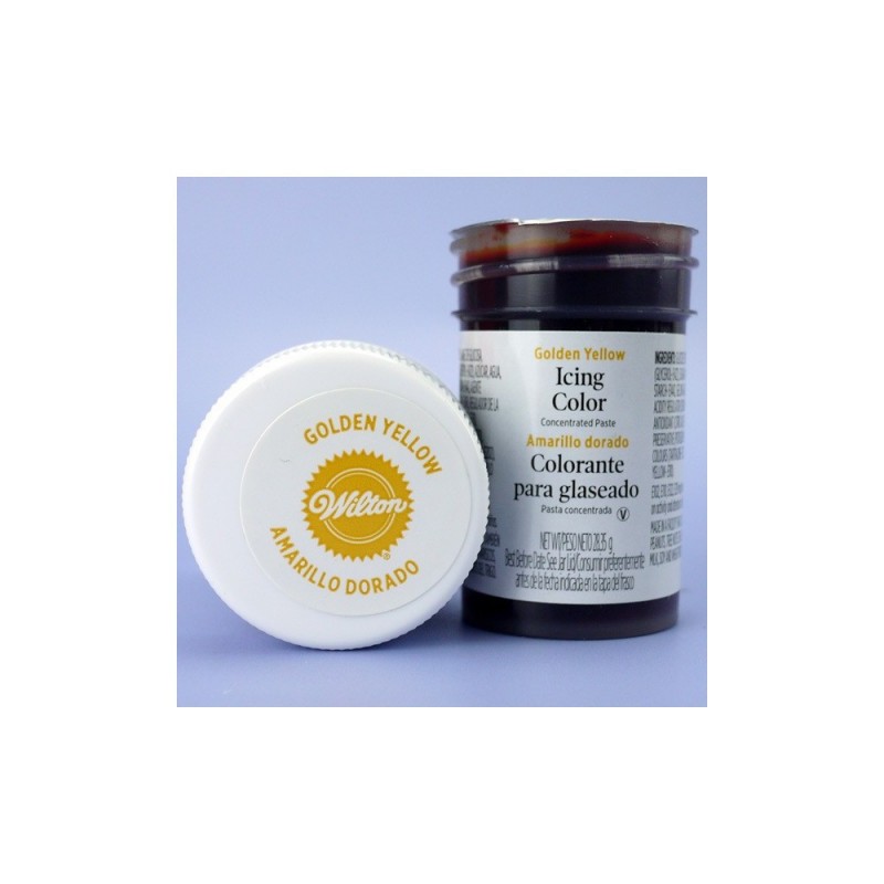 Wiltonin Golden Yellow (kullankeltainen) on kirkas elintarvikeväripasta, jolla värjäät helposti voikerman, fondantin, marsipaanin, sokerimassan, kuorrutteet ja taikinat. Väriä voi myös sekoittaa muiden sävyjen kanssa oman värin luomiseksi.